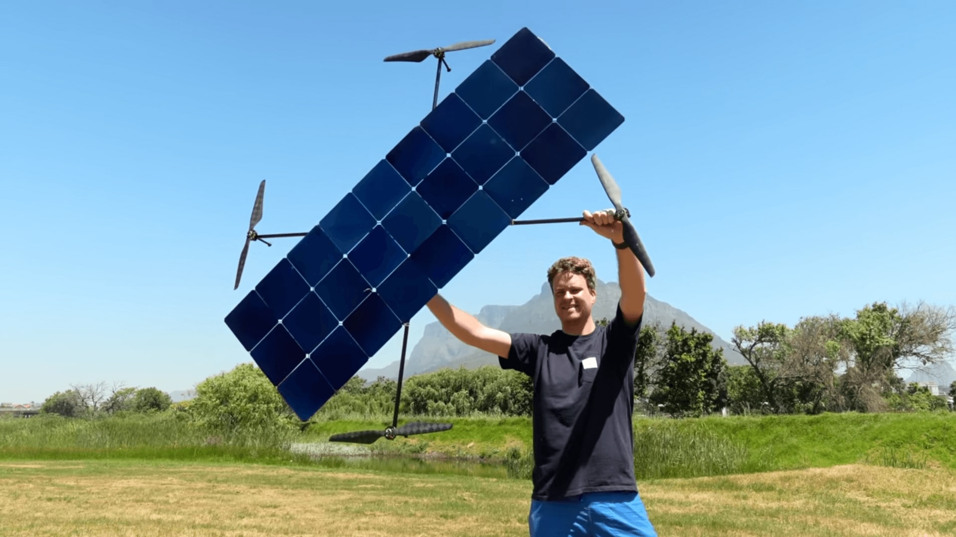 En esta ocasión el tándem ha optado por primar la sostenibilidad sobre la velocidad con su nuevo dispositivo. El dron solar que han desarrollado tiene un armazón de fibra de carbono en forma de X para acomodar tres hileras de nueve paneles solares ultrafinos y cuatro rotores con hélices de dieciocho pulgadas.